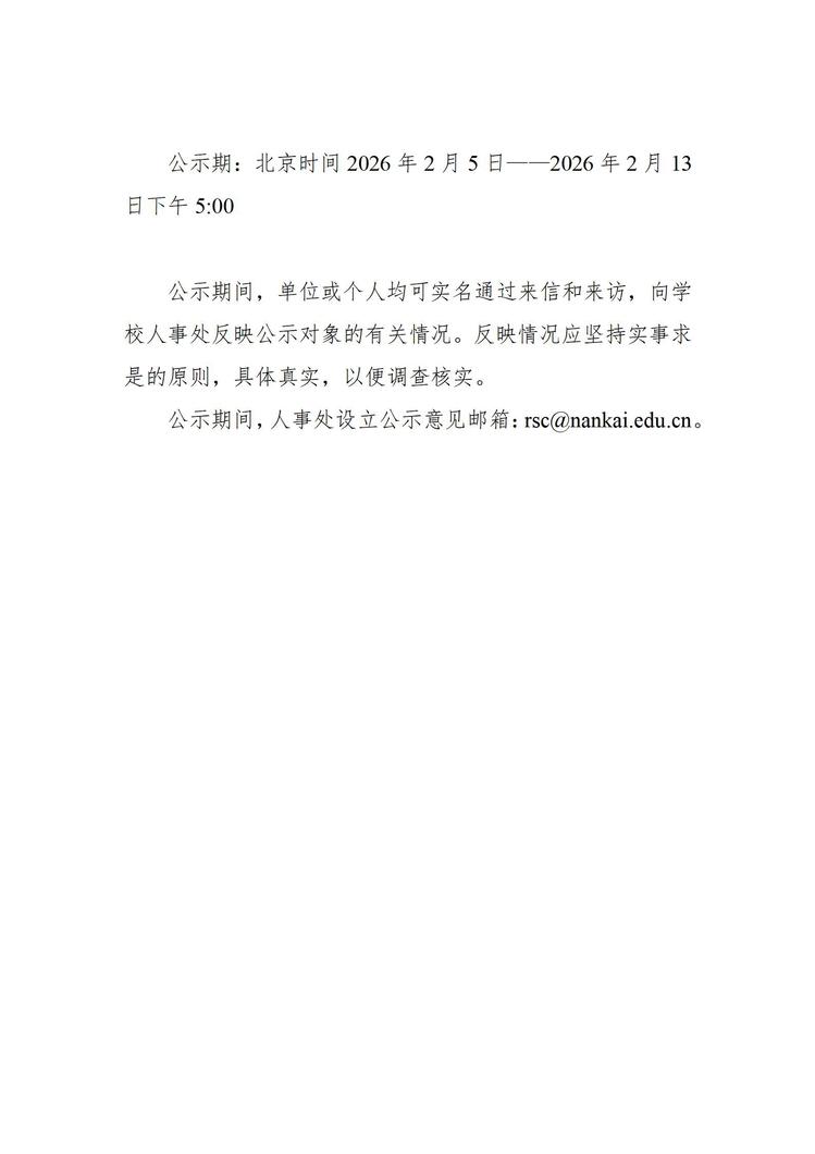 南开大学2026年教职工公开招聘拟聘用人选公示